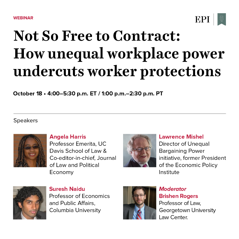 To hear more about this exciting new issue, please register for an upcoming (zoom) conversation on Oct. 18 with Brishen Rogers, Larry Mishel, Suresh Naidu, and Angela Harris.