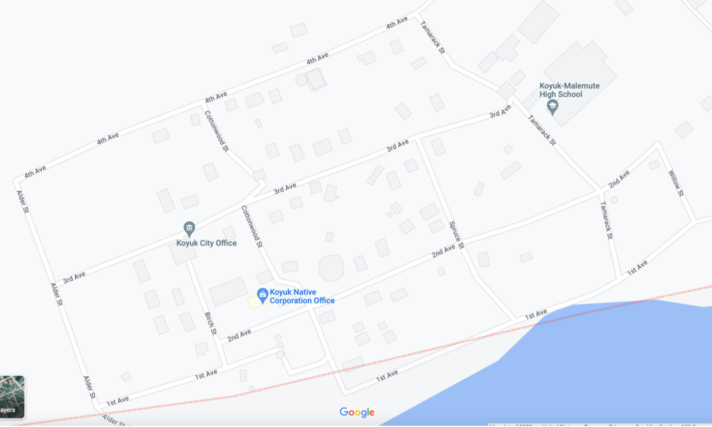 The new maps suffer from three significant problems. First, data is once again self-reported by industry and again, allows providers to report advertised speeds. Second, ISPs claim to cover houses where no such coverage exists or coverage is overstated. The state of Vermont, for instance, found over 20,000 addresses that had errors in the reported broadband service. This could result in the state losing out on millions of dollars in broadband funding. Third, houses, neighborhoods, and in some instances, entire communities are absent from the map – a process that I am calling “digital deletion.” New York State, for instance, reported that some 31,000 locations were missing from the location fabric. Back in Vermont, a reported 22% of locations were absent from the map. Some of the most egregious examples of digital deletion are found in the rural tribal communities of Alaska. Take, for instance, the town of Koyuk, home of the federal-recognize tribe of the Native Village of Koyuk. The town’s population is 243 according to the 2020 census. Demographically, Koyuk’s population is 98% American Indian and Alaska Native. As you can see below, a Google Map image finds multiple edifices in a cross section of the town. The FCC’s map, by contrast, depicts the town of Koyuk without any buildings at all.