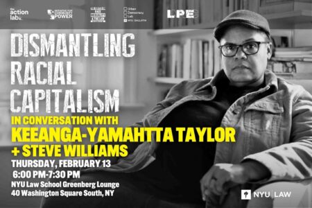 On February 13th, LPE NYC is thrilled to be teaming up with The Action Lab, The Initiative for Community Power, The Center on Race, Inequality, and the Law, and NYU Gallatin for the next event in our a Dismantling Racial Capitalism Series, a Conversation with Keeanga-Yamahtta Taylor & Steve Williams. Keeanga-Yamahtta Taylor writes and speaks…