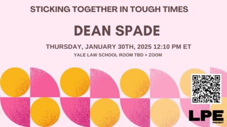 Please join the LPE Project on Thursday, January 30th, from 12:10 to 1:30 PM ET, for a lunch talk with Dean Spade titled Sticking Together in Tough Times. Dean Spade is a Professor at Seattle University School of Law, where he teaches courses in Administrative Law, Poverty Law, Gender and Law, Policing and Imprisonment, Professional…