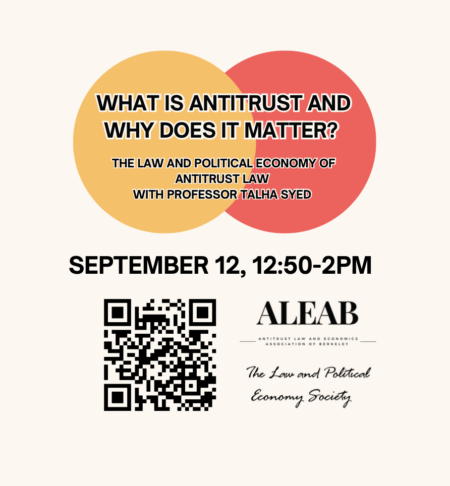 The Antitrust Law and Economics Association and the LPE Society at Berkeley on Thursday, September 12th at 12:50-2pm PST held a talk with Professor Talha Syed which discussed: What is antitrust law? How can we use the tools of LPE to think about the field? No prior experience in antitrust is required! Professor Syed began…