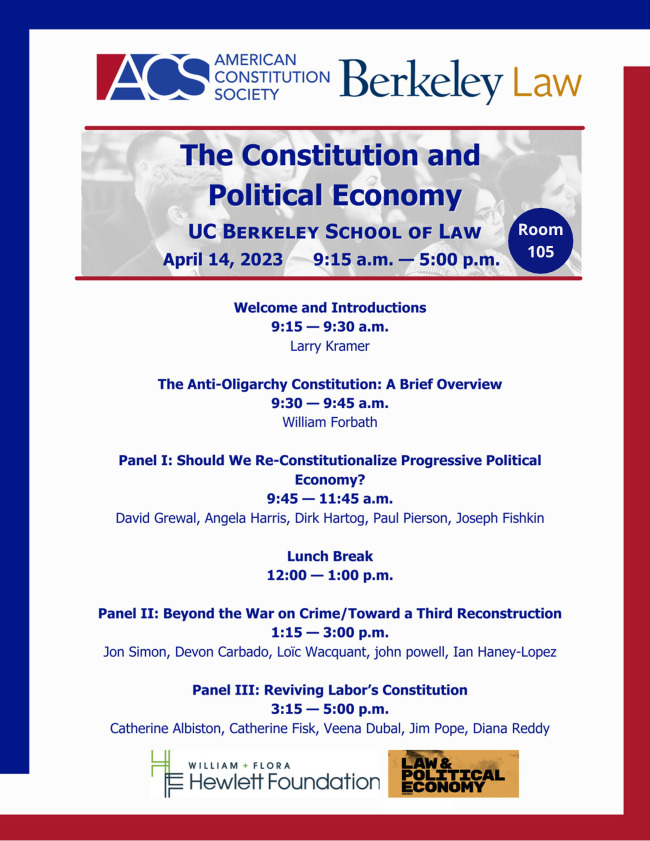 The American Constitution Society in conjunction with the Hewlett Foundation and the Law and Political Economy Project is hosting a conference on Friday, April 14th.