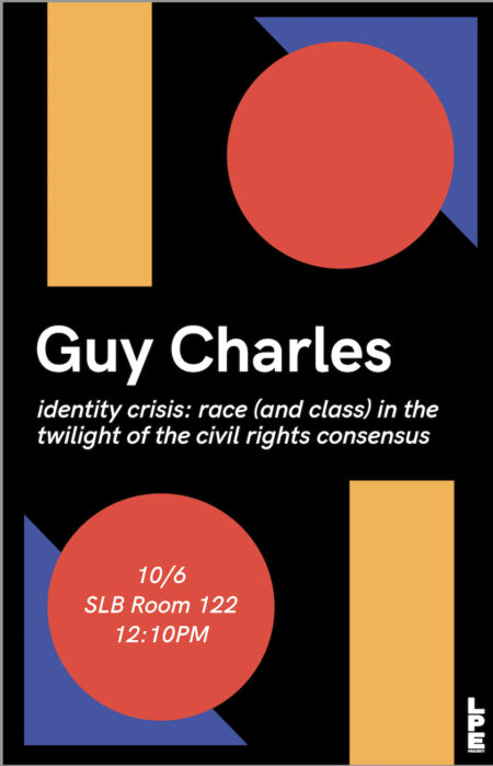 Please join the Yale Program in Law and Political Economy and YLS LPE Student Group for an in-person event October 6 at 12:10pm (RSVP req’d) with Professor Guy-Uriel Charles (Harvard Law School). Professor Charles will be discussing a work in progress, titled “Identity Crisis: Race (and Class) in the Twilight of the Civil Rights Consensus.”…