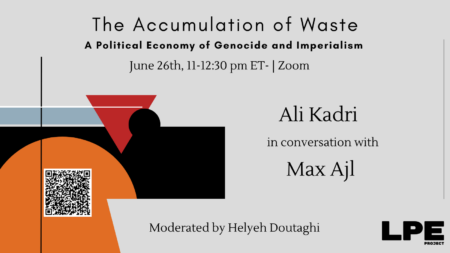 On Wednesday, June 26th, the LPE Project held a virtual event featuring Professor Ali Kadri (Sun Yat-sen University) in conversation with Dr. Max Ajl (University of Ghent) on “The Accumulation of Waste: A Political Economy of Genocide and Imperialism.” The conversation was moderated by Dr. Helyeh Doutaghi (Yale Law School). War is often understood through…