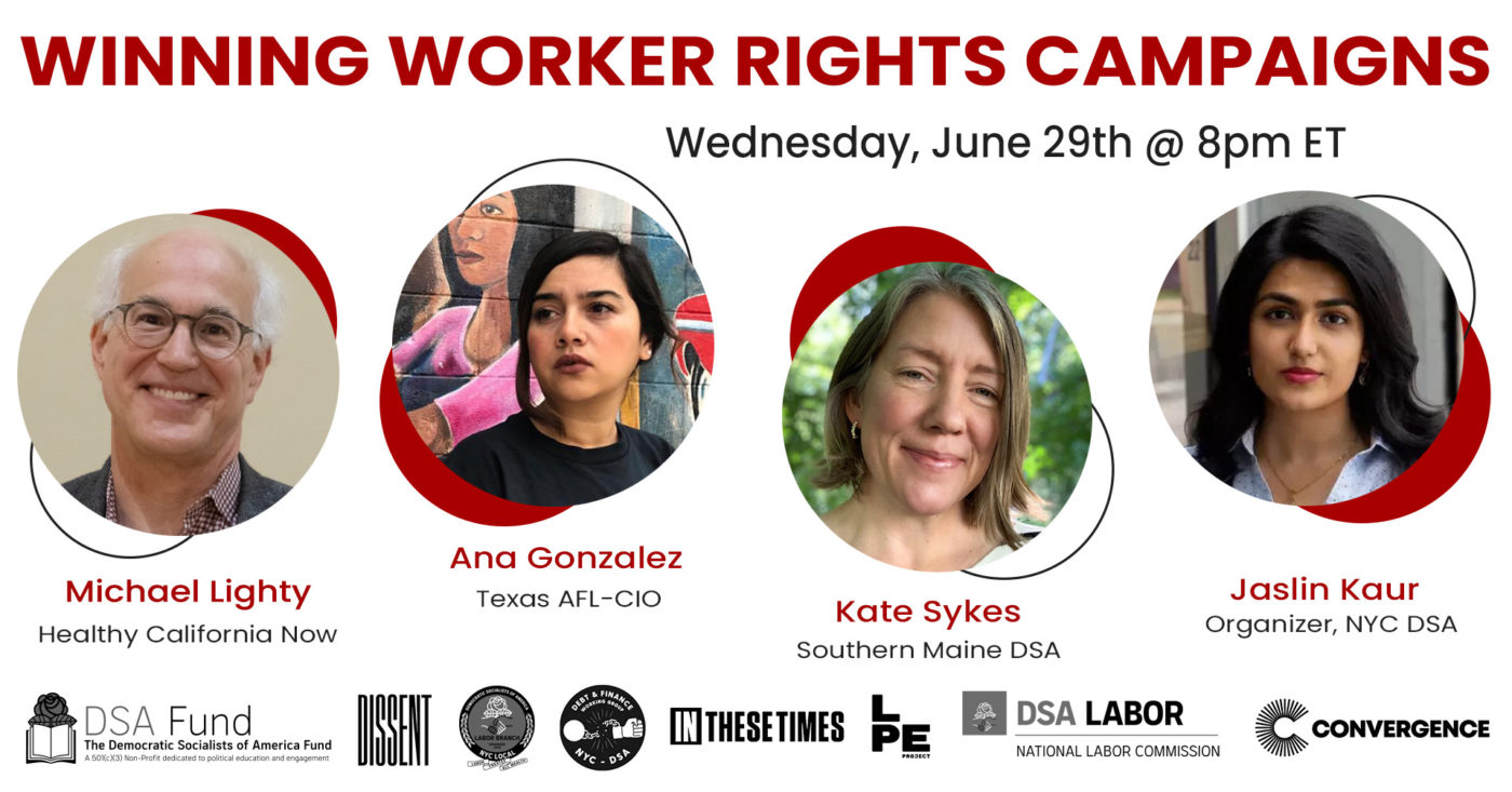 The How We Win series shares lessons and how-to experience from successful campaigns around the country, showing how democratic socialist organizers and coalitions can move forward, and achieve tangible wins in support of economic and social justice goals. Join us to discuss what worker justice campaign strategies have worked, what’s been won, and the path forward.