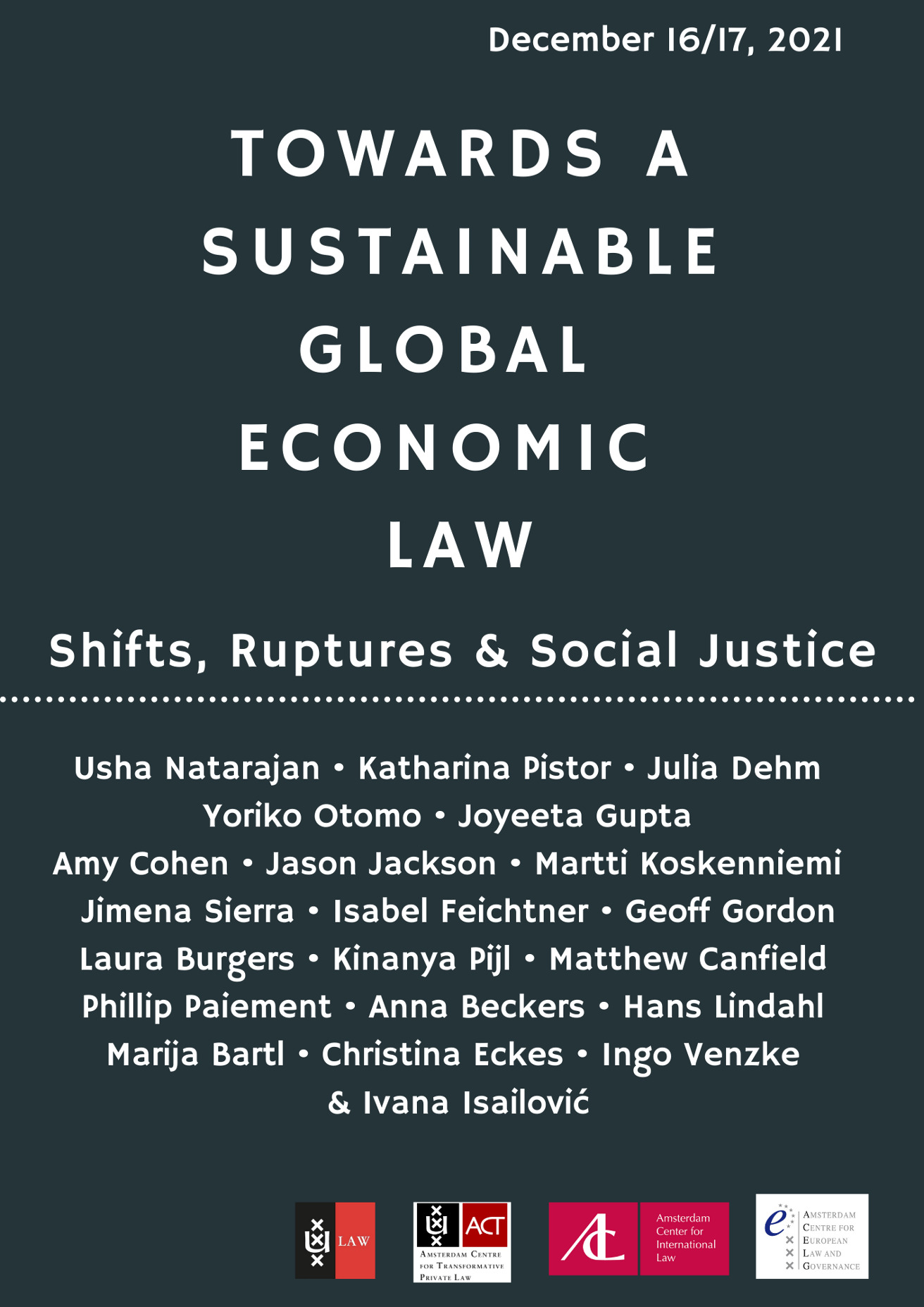 What should ‘sustainable global economic law’ (SGEL) look like in the context of looming ecological catastrophe, wild levels of inequality and wealth concentration, and strong demands for social, racial and gender and environmental justice? Law provides the very infrastructure that sustains capitalism, which is inextricably linked to politically-sanctioned, large-scale destruction of nature, expropriation and the production of inequalities, and yet law is also needed to address historical disadvantages and social exclusion, protect planetary resources and constrain public and private power.