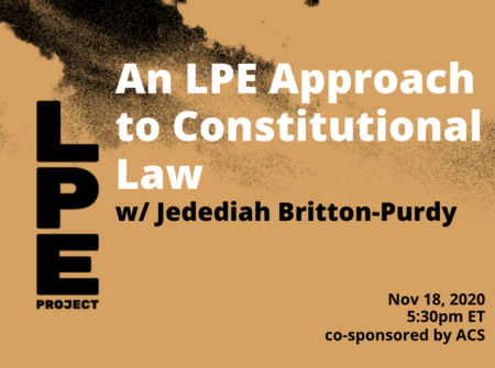 Join us for the third session of the LPE Project & ACS’s online course introducing students to LPE analysis. This course pairs lectures and short readings (from our own LPE Blog) that illustrate how LPE frameworks can help us examine law’s role in the perpetuation of racial and gender injustice, the devaluation of social and…
