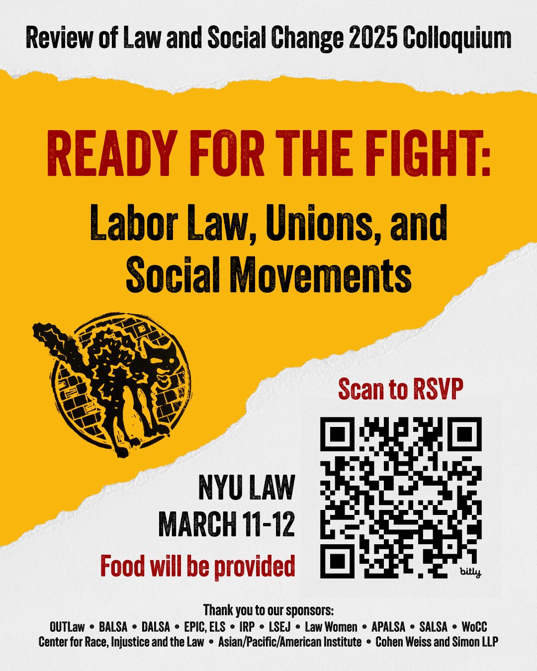 The Review of Law & Social Change is holding their annual Colloquium, “Ready for the Fight: Labor Law, Unions, and Social Movements!” on March 11 and 12 at NYU Law.