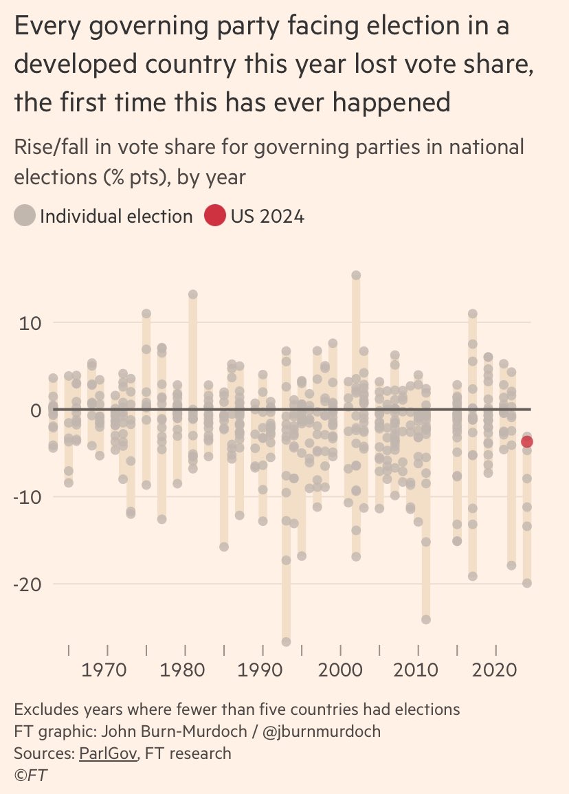 First, voters clearly didn’t like their options, and Kamala’s closing argument — campaigning with Cheneys and urging people to save a democracy that many already feel has died — fell flat. There is a lot to excavate about the failures of the Harris campaign, the Biden Presidency, and the Democratic Party itself. Gabe Winant’s recent post-mortem is one place to start.